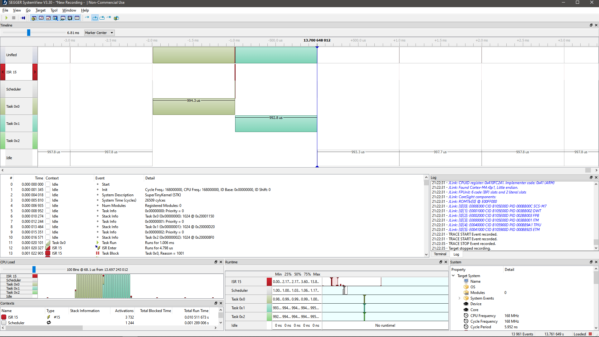 Scheduling can be analyzed with the SEGGER SystemView.