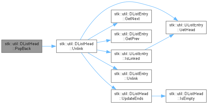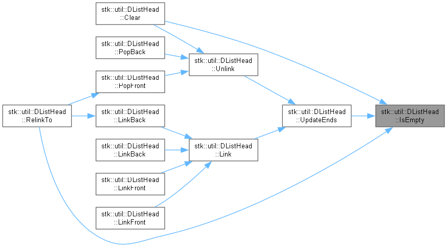 References DListHead(), IsEmpty(), LinkBack(), PopFront(), and STK_ASSERT.